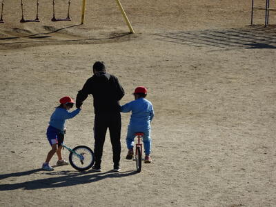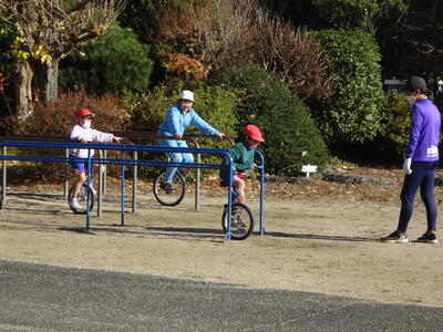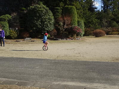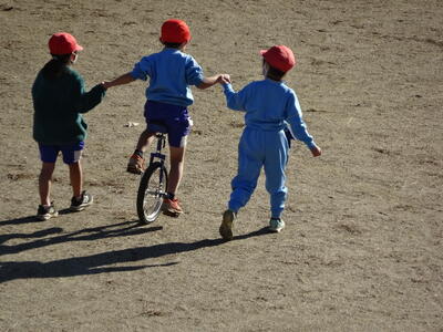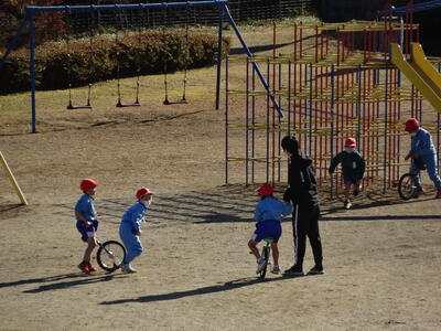 今日は、校長先生と学生ボランティアの先生と遊んでいました。一輪車もとても上手になってきました。