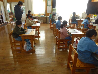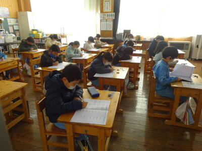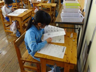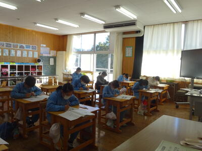今日は学力テスト2日目です。2校時は全学年 算数、3校時は3~6年生が理科、4校時は、5年生が質問紙を実施しました。みんな集中して、テストに取り組んでいました。