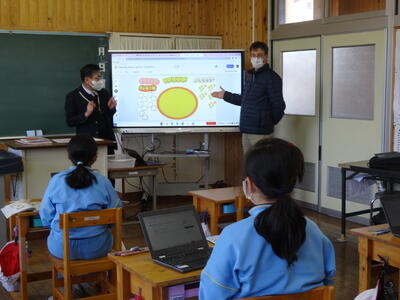 今日は、2年生の国語「お手紙」の学習と3年生の「三角形」の学習の授業を見てくださいました。