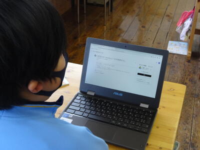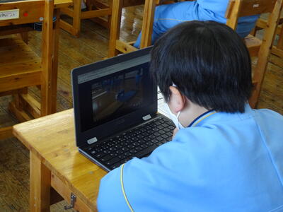 空いた焼森タイムの時間を利用して、5・6年生が、明日行う「逆川グリーンウォークラリー」に向けて簡単なリハーサルをしていました。タブレットPCを運営に活用しています。明日は、天気が良さそうです。今から楽しみです。