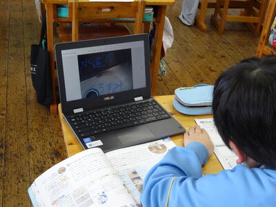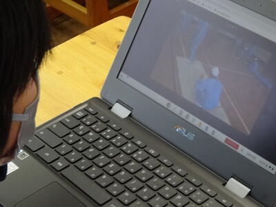 先週、マット運動に取り組んでいる様子を撮影した動画をタブレットで見て、改善点を見いだして、再トライしていました。タブレットを有効に使って、体育の学習を進めています。