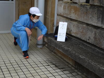 自分自身が学校内で見つけた汚れをタブレットで撮影してきたものをみて、