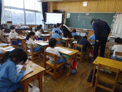 学力向上推進リーダーの2学期の訪問はこれで最後です。今日は,6年算数、5年国語、1年国語の授業に入ってくださいました。授業後は,担任の先生と話し合い,よりよい授業にできるよう,子供たちの力を伸ばすために、常に授業改善に取り組んでいます。
