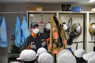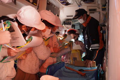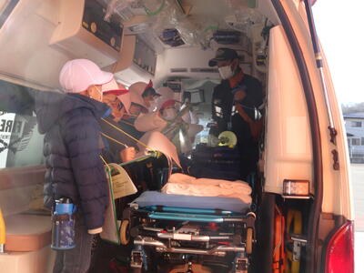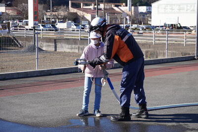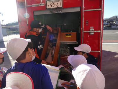 芳賀分署では、タンク車やポンプ車の装備、救急車の中にある医療器具、出動準備室など見せていただきました。また、放水も一人一人体験させていただきました。細かく丁寧に説明をしてくれて、質問にも答えていただけました。茂木分署の皆さんありがとうございました。