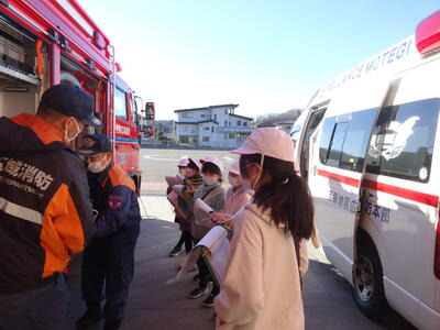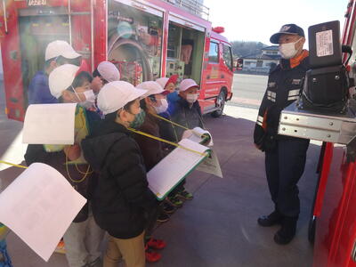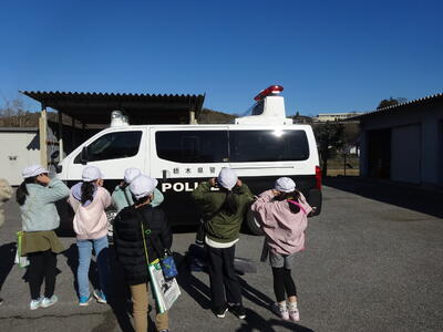 社会科の「わたしたちのくらしを守る」の学習で芳賀地区広域行政事務組合消防本部真岡消防署芳賀分署と茂木警察署を見学しました。