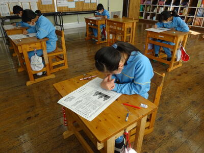 を読んで、設問に答えました。子どもたちも集中して,新聞記事に向き合っていました。