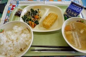 ごはん 牛乳 かつおカツ ささみサラダ