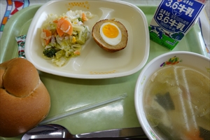 はとむぎパン きなこクリーム 牛乳 スコッチエッグ