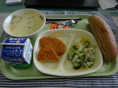 ごはん 牛乳 チキンのメンチカツ