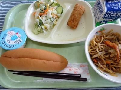 セルフ焼きそばパン 牛乳 お魚ソーセージフライ