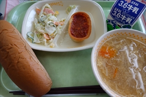 黒糖パン 牛乳 トマトグラタン コールスローサラダ えのきの玉子スープ