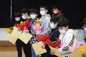 業間から3校時にかけて、6年生を送る会を体育館で行いました。4・5年生が中心となり、これまでに準備を進めてきました。手作りの会でしたが、6年生への感謝の気持ちをこめて、心のこもった会になりました。