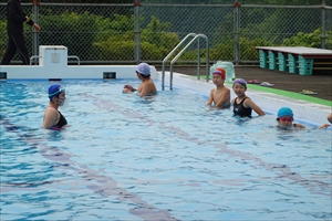 2校時に、5・6年生は、体育実技指導者派遣事業として、パシフィックスポーツプラザのコーチングスタッフ2名が来校し、水泳の指導をしていただきました。専門家による指導で、水泳の上達が期待できますね。
