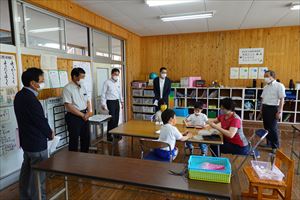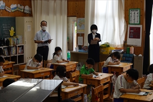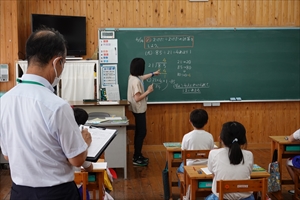 5校時に、学力向上コーディネーターの金澤先生、町教委から金井・栁先生、芳賀教育事務所から松尾先生が来校し、子どもたちの授業のようすを見てもらいました。子どもたちの学力向上、先生方の指導力改善を目的に、今後も学力向上コーディネーターの金澤先生を中心に、指導していただく予定です。
