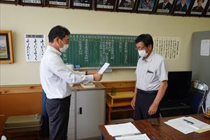 本日の業間から3校時にかけて、学校評議員会を開催しました。学校評議員会とは、後援会、PTA、民生委員、地域の有識者などから組織された学校評議員5名の方に、学校の取組に関して、ご意見やご協力をいただき、学校運営の改善を図るためのものです。本日は、その1回目にになり、今年度の学校経営方針を説明したり、子どもたちの授業のようすを見ていただいたりしました。5名の学校評議員の方には、お忙しい中、ありがとうございました。