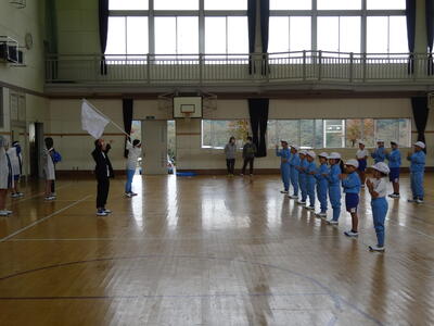 最後の全体練習は,残念ながら、雨で体育館での練習となりました。
