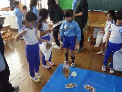 ◦ 1年生は3校時に生活科の「あきであそぼう」の授業をしました。2年生と逆川保育園の年長の子どもたちを招待して、一緒に活動しました。