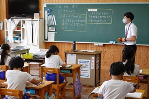 5校時に、学力向上コーディネーターの金澤先生、町教委から金井・栁先生、芳賀教育事務所から松尾先生が来校し、子どもたちの授業のようすを見てもらいました。子どもたちの学力向上、先生方の指導力改善を目的に、今後も学力向上コーディネーターの金澤先生を中心に、指導していただく予定です。