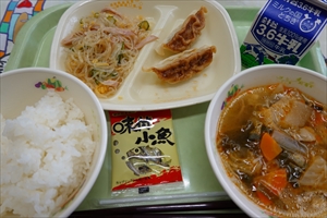 ごはん 牛乳 蒸しギョウザの酢醤油がけ