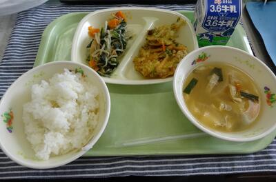 野菜かき揚げ丼 牛乳 メンマ入りごま和え