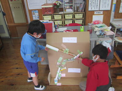 1年生が用意した、お店でいろいろなゲームを楽しんだり、2年生の作ったおもちゃで一緒に遊んだりして過ごしました。1・2年生は、お兄さん・お姉さんらしく、やさしくいろいろなことを教えていて、素晴らしかったです。