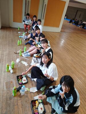 道の駅羽鳥湖に到着し、全員元気にお昼ご飯を食べています。