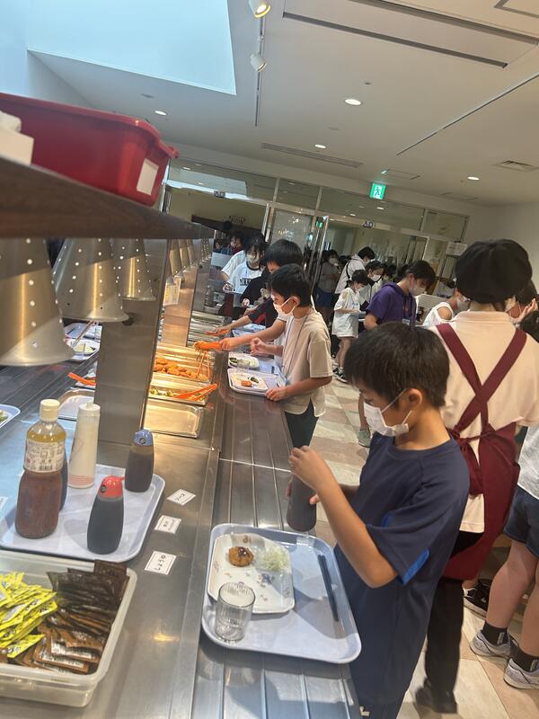 昼食はラーメンでした。生活班ごとにおいしくいただきました。