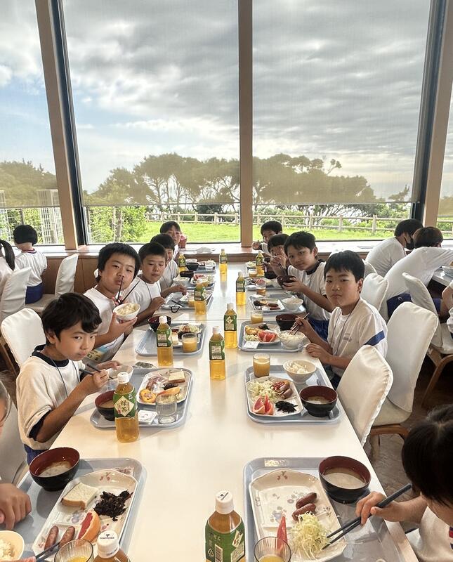 おはようございます。7人全員元気に朝食を食べています。これから活動スタートです!
