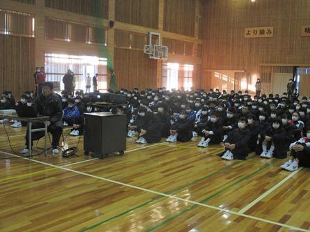 寒い中でしたが、生徒も真剣に話を聞いていました。