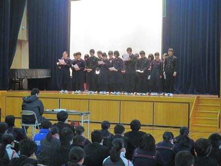 今回は、来年度生徒会役員の任命と表彰がありました。