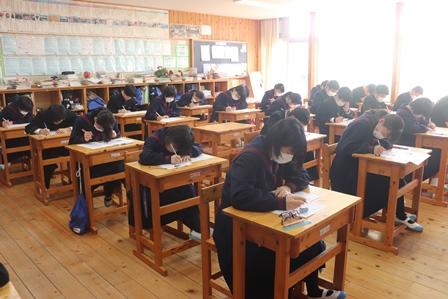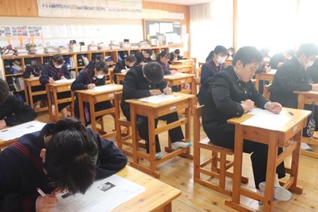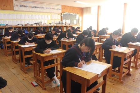 生徒たちは寒さに負けず、真剣にテストに臨んでいました。