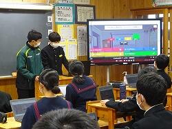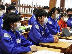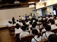旧校舎の画像などを見て、生徒たちは興味深そうに校長先生の話に耳を傾けていました。