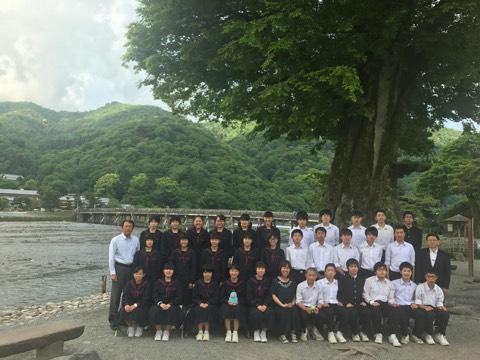 嵐山 渡月橋前で。このあとグループ別の行動です。