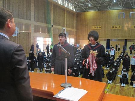 今回は、来年度生徒会役員の任命と表彰がありました。