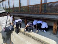 ↑床下を覗き込み、ウグイス張りの仕組みを確認中です