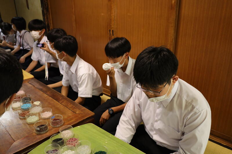 現在、生徒たちは念珠づくりに取り組んでいます。