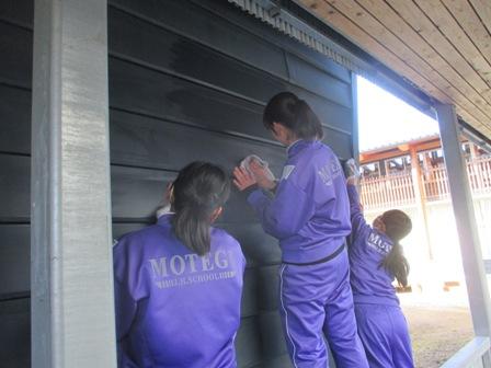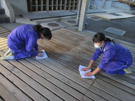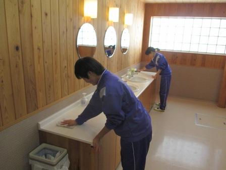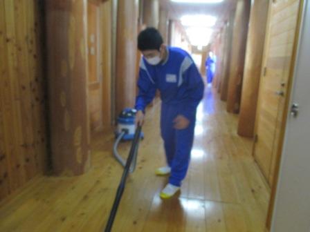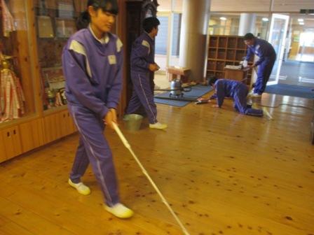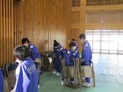 明日の立志式に向けて、1年生は会場準備を3年生が校舎周りの清掃を行いました。