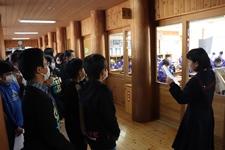 3年生のガイドで校舎案内を行いました。先輩方が授業を受けている姿を見たり、木の香りが漂う綺麗な校舎を見て4月からの中学校生活に胸を膨らませたことと思います。