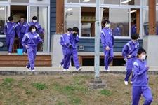 本日の帰りの会終了後、茂木消防署員の方をお招きして避難訓練を行いました。