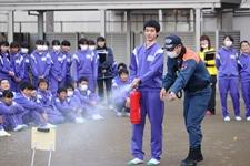 避難した後、茂木消防署員の方のお話を聞き、その後代表の生徒と職員が消火活動を行いました。生徒達は真剣に訓練に取り組んでいました。茂木消防署員の皆様お世話になりました。