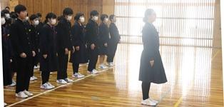 3年生が卒業したので新生徒会長があいさつを行いました。校長先生からは、今年度の最後の朝会ということで、茂木中の校訓である「より励み・明るく・強く・美しく」が達成できたどうかというお話がありました。