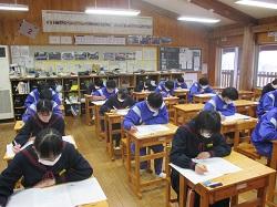 生徒たちは寒さに負けず、真剣にテストに臨んでいました。