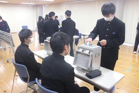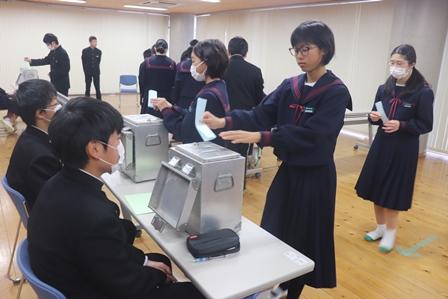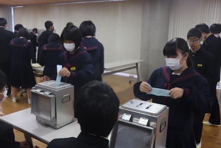 生徒は厳かな雰囲気の中、しっかりと投票していました。