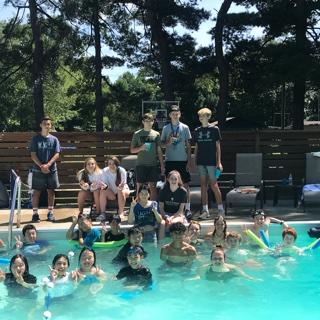 BBQの準備をしている間、子どもたちはプールで楽しんでいます。