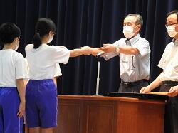校長先生からは、コロナウイルスの感染予防に関して、アルコール消毒等の日々の取り組みの意義と夏季休業中の感染予防のお話がありました。