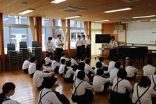 本日の朝、6月9日(土)に行われる下草刈りの地区別指導が行われました。生徒会役員が中心となって目標や準備物、当日の流れなどを確認しました。当日、がんばりましょう。