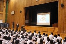 校長講話では、「なぜ学習するのか」というテーマで生物学的に人間が学習する意味、目的をお話して下さいました。表彰では春季県大会や良い歯のポスターなどの表彰を行いました。