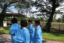 畜産酪農研究センターは牛の糞や尿を再利用して発電を行うバイオガスプラントについて見学しました。菌などが入ってはいけないということで、防疫服を着用しました。
