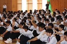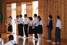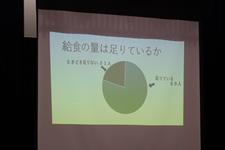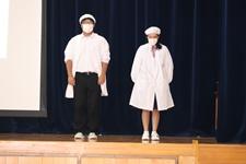 白衣の正しい着衣の仕方や日頃の給食に対する意識調査アンケート結果の報告、食に関するクイズなど工夫を凝らした発表で、生徒達も興味津々でした。