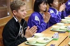 給食の様子です。お箸を上手に使って食べていました。今日の給食はイカの天丼でした。スピード・ウェイタウンの生徒達のお口に合ったでしょうか?